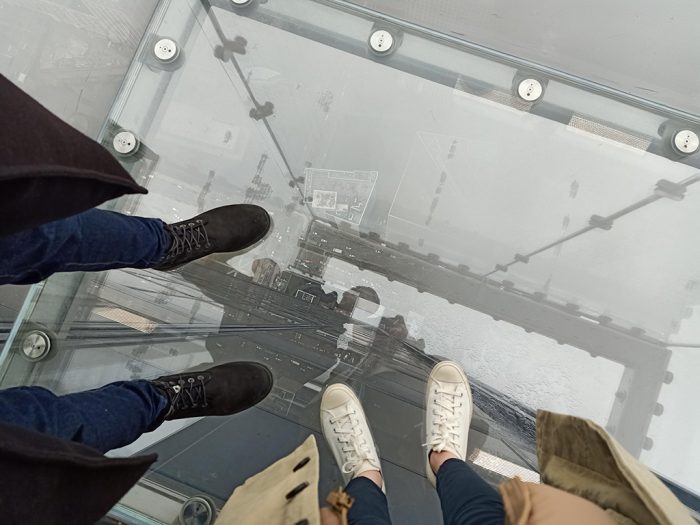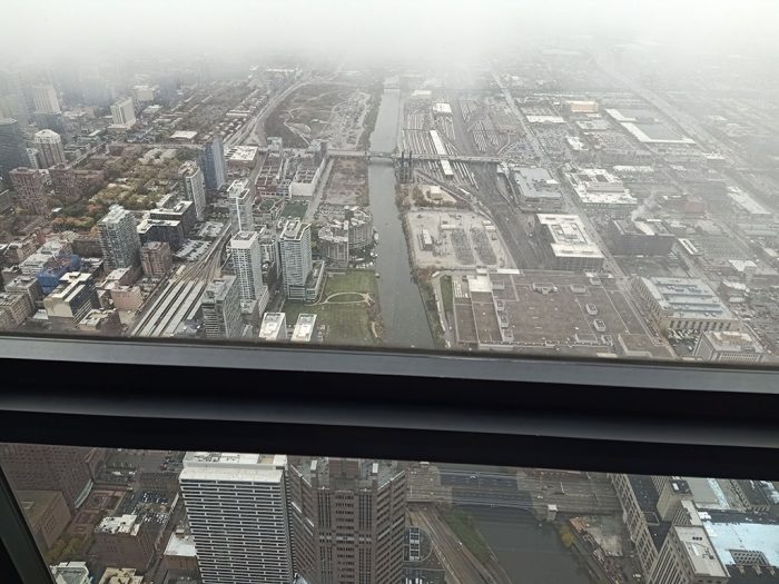 The weather was horrible and my legs were freezing for an hour and a half inside the train before I got off at the last stop. I met my friend at the nearest Starbux and headed for Willis Tower despite the shitty weather.
